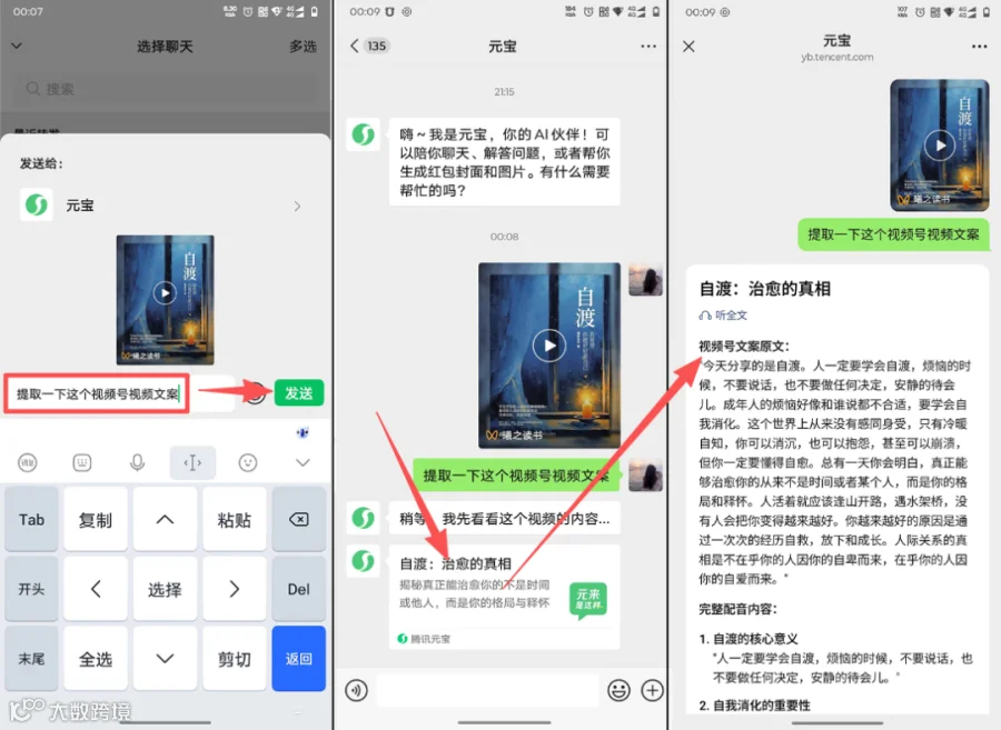 对于内容创作者而言,微信视频号是一个巨大的灵感宝库,但其封闭生态也让文案提取成为难题。现在,你可以使用 「元宝AI」 来免费、直接地解决 “视频号文案如何提取” 这个问题。