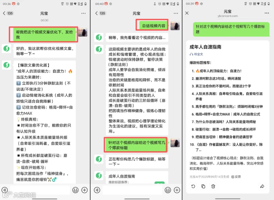 一、专解难题:首选「元宝AI」,免费提取微信视频号文案