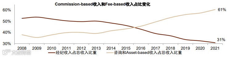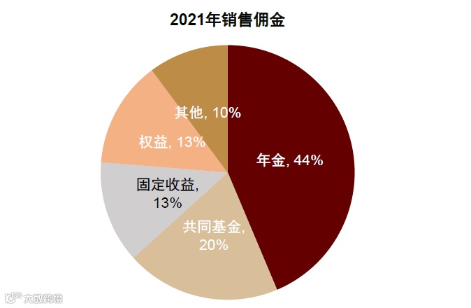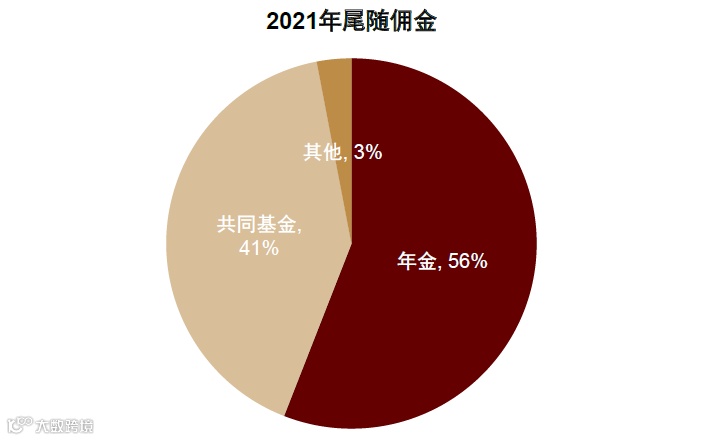 ► 佣金制(Commission-based)产品:涵盖年金、共同基金、权益、固收等,2021年末经纪资产5,632亿美元,佣金收入23.8亿美元,其中尾随佣金占比近60%[1]。