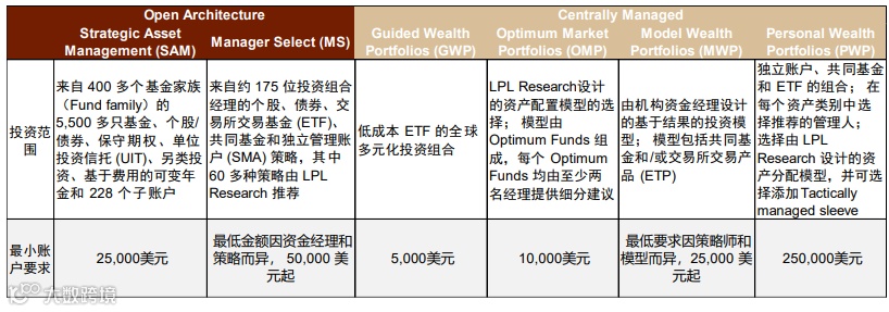 图表:LPL Financial六大投资平台覆盖绝大部分客户谱系,提供多样选择
