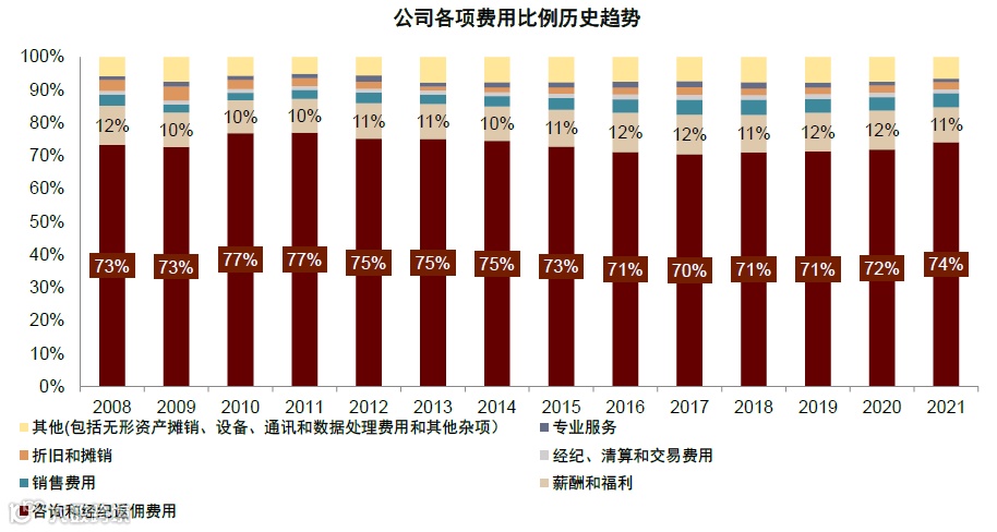 图表:成本结构中返佣支出为主,人力成本次之