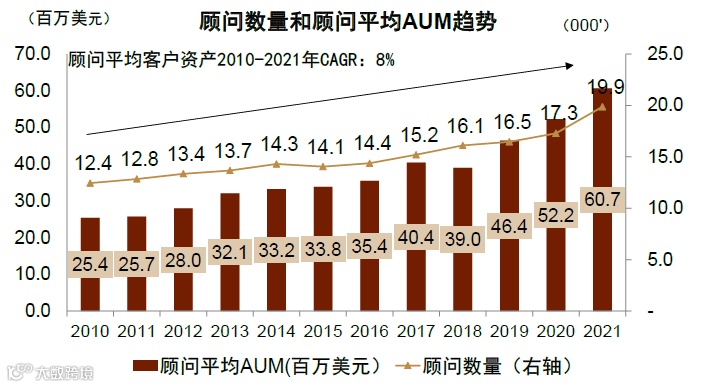 图表:顾问数量与户均AUM持续增长
