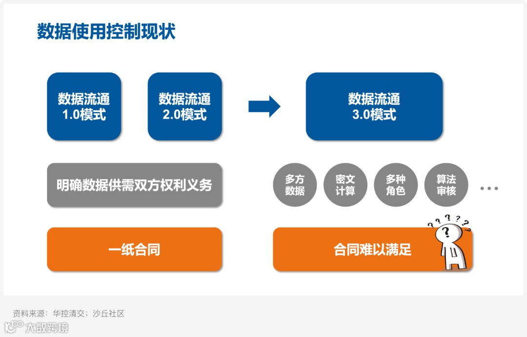 • 没有有效的技术手段对数据使用进行控制,交易供需双方以及交易所之间必须建立完全的互信关系;