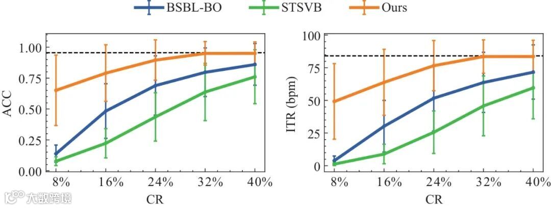 值得注意的是,CCA算法分类ACC高于分类未压缩的数据的准确率。这是因为本文提出的实时压缩算法是任务依赖的,可以有效地提取脑电信号中的任务相关成分,增加任务相关成分与噪声之间的信噪比。