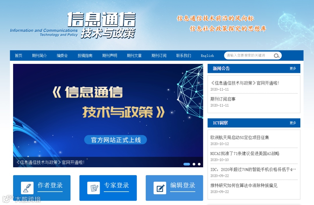 《信息通信技术与政策》是工业和信息化部主管、中国信息通信研究院主办的专业学术期刊。本刊定位于“信息通信技术前沿的风向标,信息社会政策探究的思想库”,聚焦信息通信领域技术趋势、公共政策、 国家/产业/企业战略,发布前沿研究成果、焦点问题分析、热点政策解读等,推动5G、工业互联网、数字经济、人工智能、区块链、大数据、云计算等技术产业的创新与发展,引导国家技术战略选择与产业政策制定,搭建产、学、研、用的高端学术交流平台。