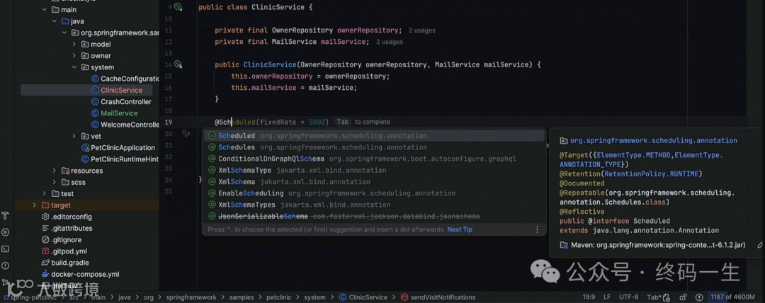 在代码中处理 cron 表达式比以往更加简单。使用 Spring、Quarkus 或 Micronaut 实现定时服务时,您可以通过紧邻的描述轻松理解 cron 表达式。此外,自动补全功能提供了您可以立即添加和调整的预填充示例,不必从头开始编写 cron 表达式。