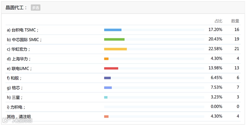 晶圆代工:华虹宏力、中芯国际、台积电占据前3; -