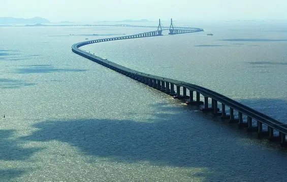 NO.1 杭州湾跨海大桥:该桥于2003年11月4日开工建设,2008年5月1日建成通车。大桥工程全长36km,是当时世界上已建成的最长的跨海大桥。