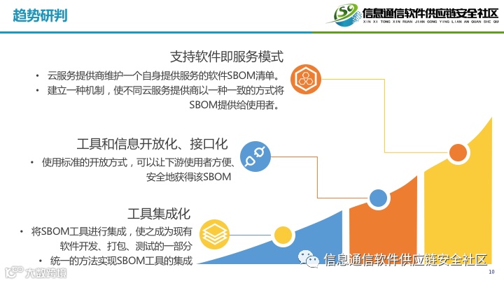 第三,如何有效传递生成的SBOM信息也至关重要。在保证SBOM正确性的前提下,还需要有效的可访问通道和互相兼容的格式进行SBOM交换。