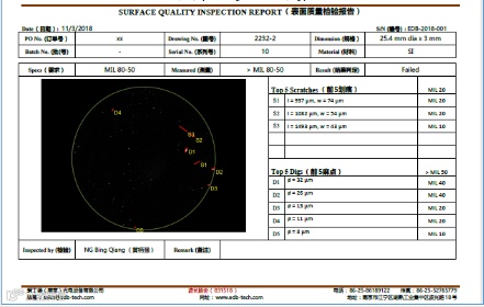 检测标准是表面疵病检测仪的灵魂,这关系到表面疵病的判断和定级。目前我司设备采用的是美军标MIL-PRF-13830B和ISO 10110-7 / ISO 14997两个标准。为了满足更多用户的需求,我们增加了厂家自定义标准。不过这就需要客户提前告知我们他们的参考标准,这样方便我们将标准写入程序之中。