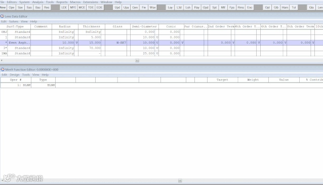 以上参数,是小熊设置的假设已知值,在zemax中构建的初始光学结构;
