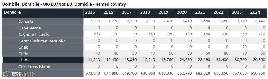 截止6月30日,中国大陆地区通过UCAS申请英国本科的人数约为30,860人,与上个申请季的同期数据(30,700)相比,增加160人,同比增长约0.52%。