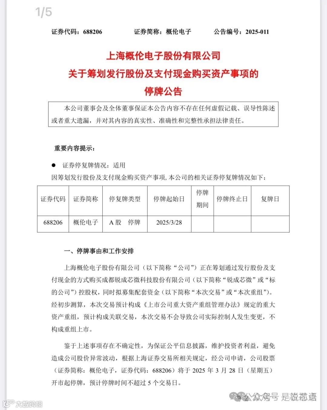 半导体领域又一起重大资产重组。经初步测算,本次交易预计构成重大资产重组,预计构成关联交易。本次交易不会导致公司实际控制人发生变更,不构成重组上市。