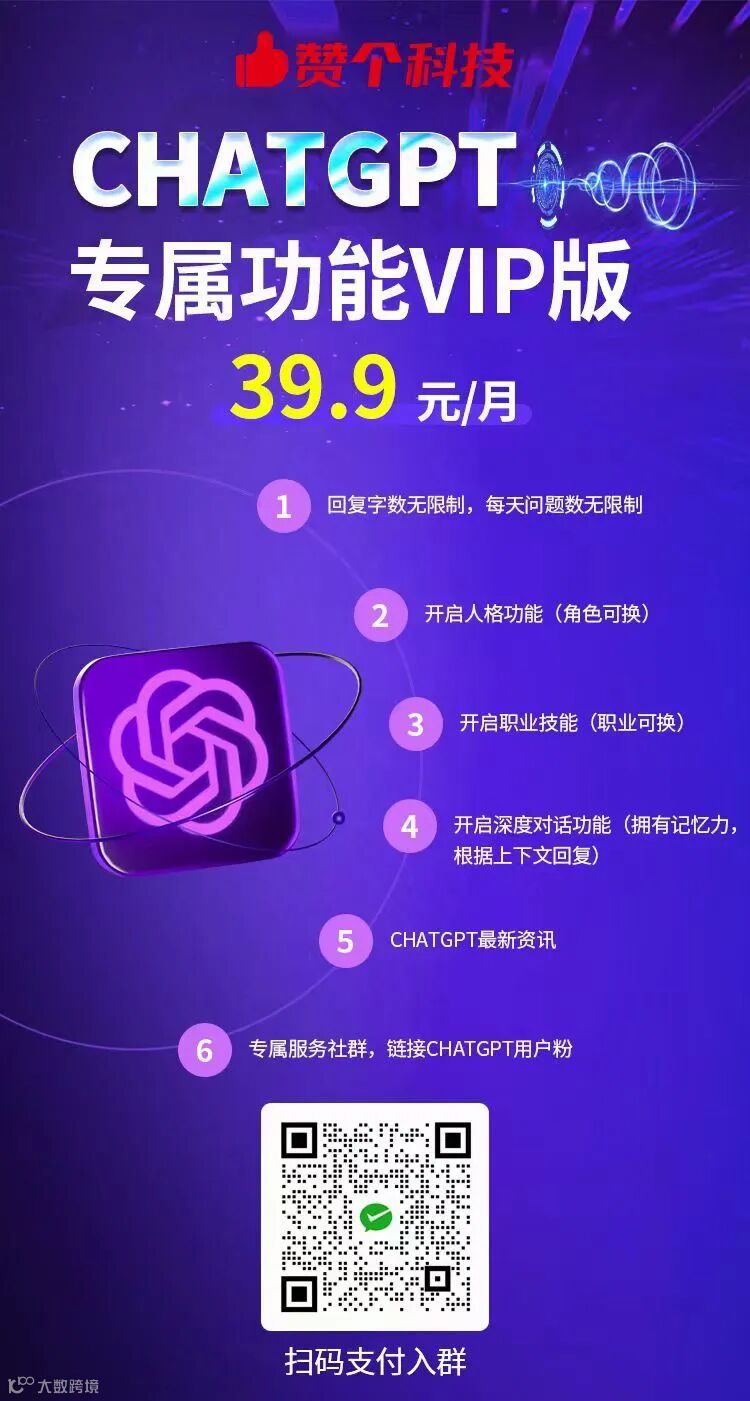 可以很确定的是,chatgpt将会改变互联网的格局,将会影响人们生活的方方面面,我们现在要做的就是紧紧的拥抱chatgpt,欢迎加入vip社群,仅需39.9元每月,备注"chatgpt",邀请入群,这是引流变现的核武器,得大干,现在入局正是好时候。