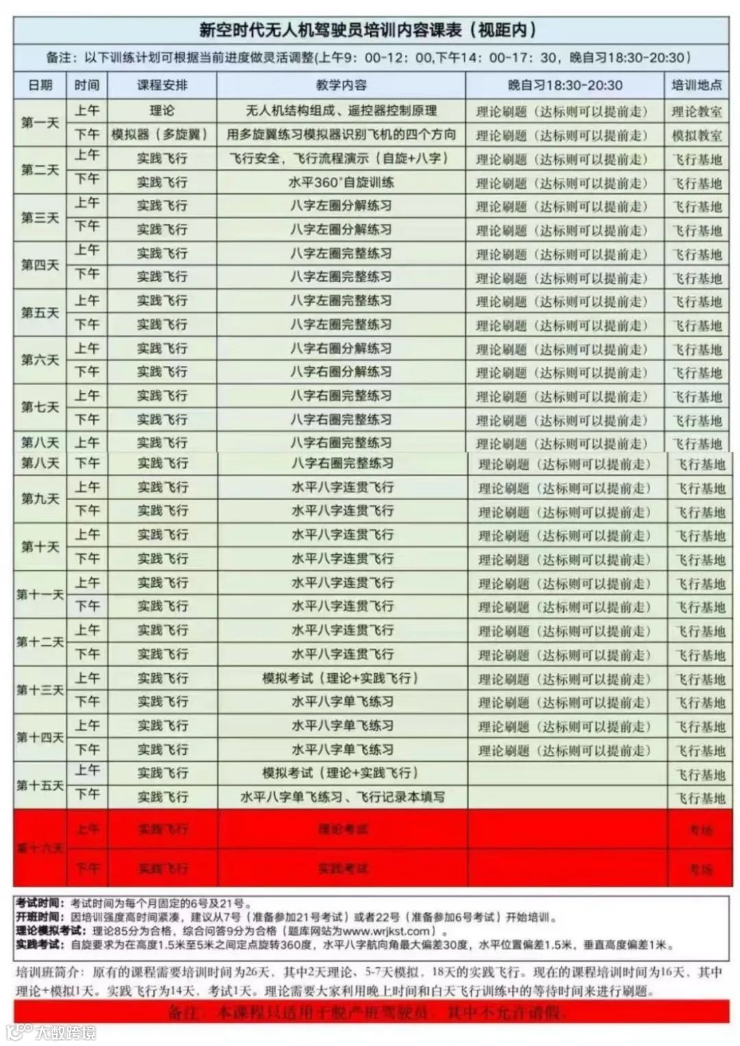 理论考试(机考,80 分合格)和实操考核(飞行姿态、应急处理等),新空时代独家研发 “考证题库 + 模拟系统”,近 3 年平均通过率 92%。