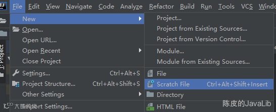IDEA中沒有专门的菜单项来创建新的scratch buffer,但是我们可以使用Find action(快捷键Ctrl+Shift+A),然后输入new scratch buffer来创建。
