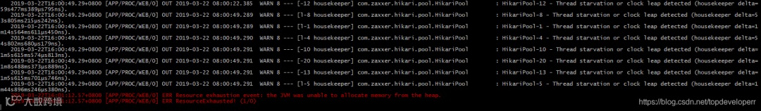 翻译过来的意思就是项目发出了一个资源耗尽的事件,告诉我们 java 虚拟机无法再为堆分配内存。