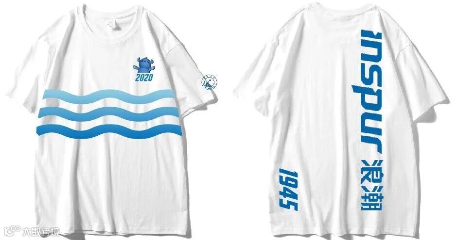 正面纯白,工作和生活随意切换,浪潮大学的标志在左肩,标明2020新兵在浪潮大学中学习。背面方形设计,Inspur和2020组合在一起,采用了拼色的手法。多种色彩更显年轻化,寓意为各不相同的我们共同组合成Inspur和2020。