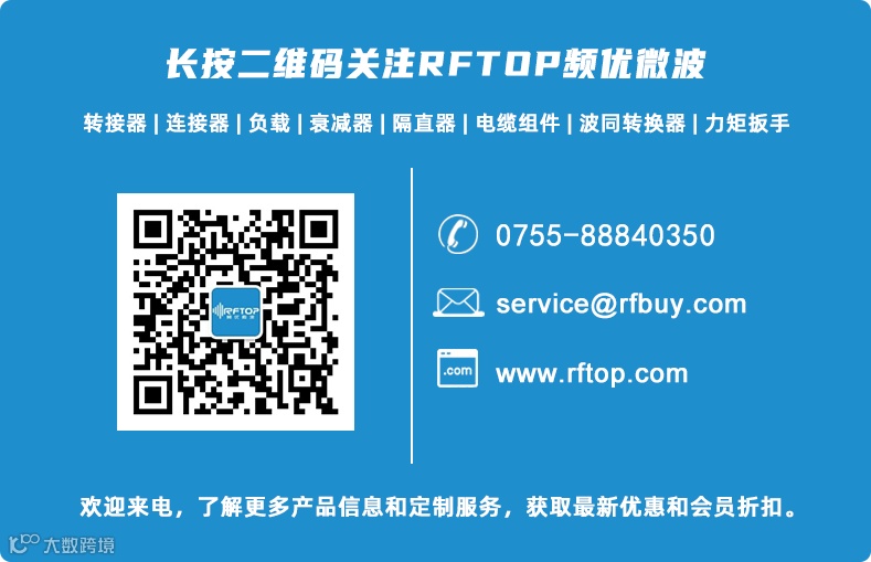 RFTOP®(频优微波)是一家专注设计、销售高品质微波毫米波器件的供应商,主要产品包括衰减器、负载、转接器、波导同轴转换器和电缆组件等频率覆盖DC-110GHz,产品广泛应用于无线通信、航空航天、测试测量、科研院校等领域。RFTOP投资兴建的小型智能化仓储为业界提供极速交货服务,同时可根据用户的不同需求提供3-15天小批量快速定制服务。