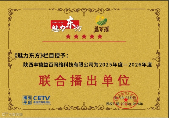当科技的脉搏与时代的声音同频共振,当助农的初心与纪实的力量相遇。陕西丰禧益百网络科技有限公司与中国教育电视台《魅力东方》栏目的年度战略合作不断深化,以伙伴之名,共赴美好之约。