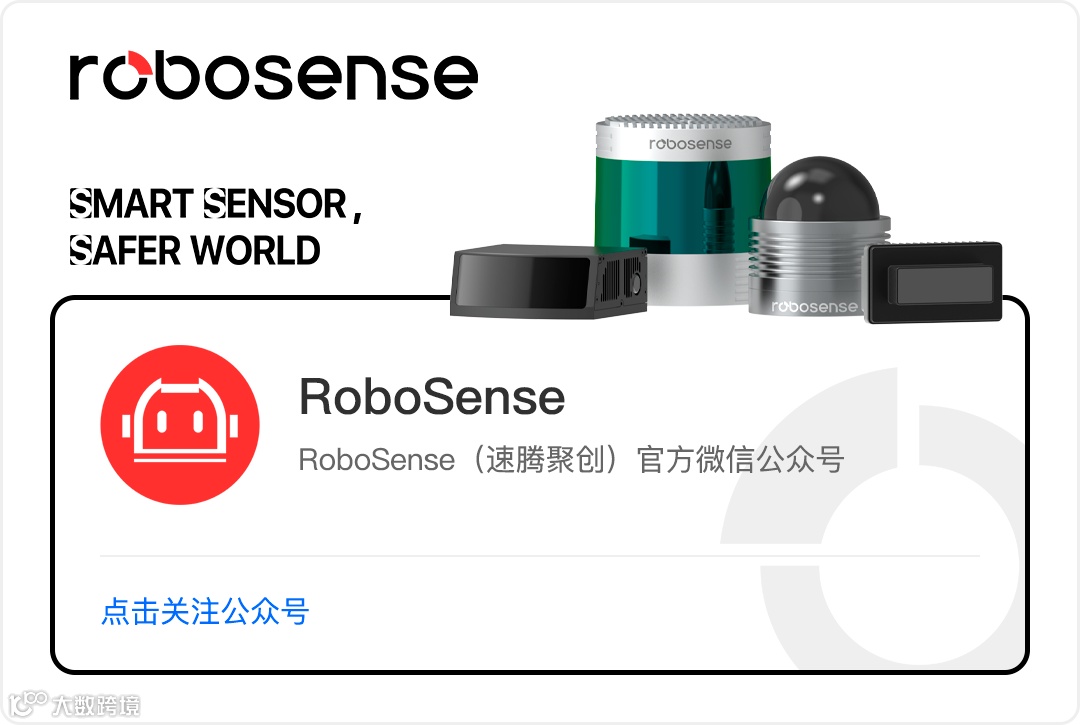 RoboSense(速腾聚创)是全球领先的智能激光雷达系统科技企业,通过激光雷达硬件、感知软件与芯片三大核心技术闭环,为市场提供具有信息理解能力的智能激光雷达系统,颠覆传统激光雷达硬件纯信息收集的定义,赋予机器人和车辆超越人类眼睛的感知能力,守护智能驾驶的安全。RoboSense(速腾聚创)创立于2014年,总部位于深圳,截至2022年底,全球布局激光雷达相关专利超过1000项。产品技术已广泛应用于自动驾驶和辅助驾驶的乘用车和商用车、无人物流车、机器人、RoboTaxi、RoboTruck、RoboBus、智慧交通新基建等细分领域,其中前装定点量产项目覆盖超跑、轿跑、SUV、重卡等各类车型,共计50余款。