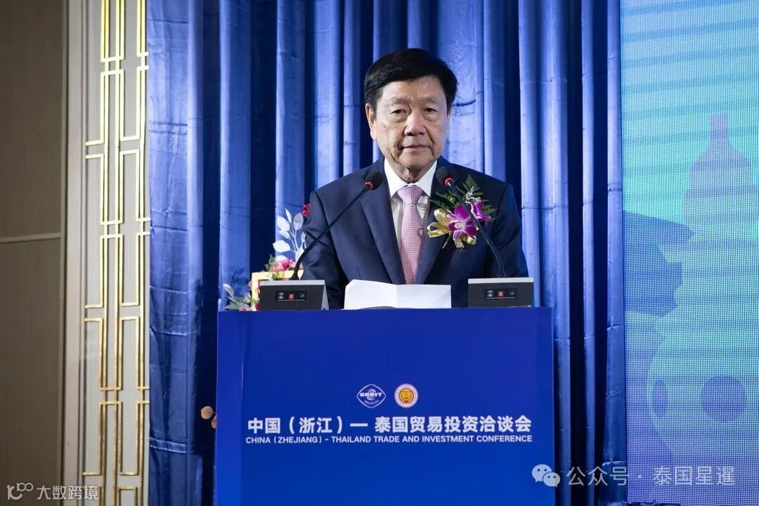 提拉蓬·考帕塔纳吉致辞中指出,泰中关系深厚,经贸合作紧密。2024年双边贸易额达1158亿美元,其中与浙江省占比达15%。双方在农产品、制造业、数字经济等领域互补性强,正积极推动签署合作MOU。泰国将继续支持企业拓展中国市场,共迎建交50周年新机遇,深化互利共赢合作。