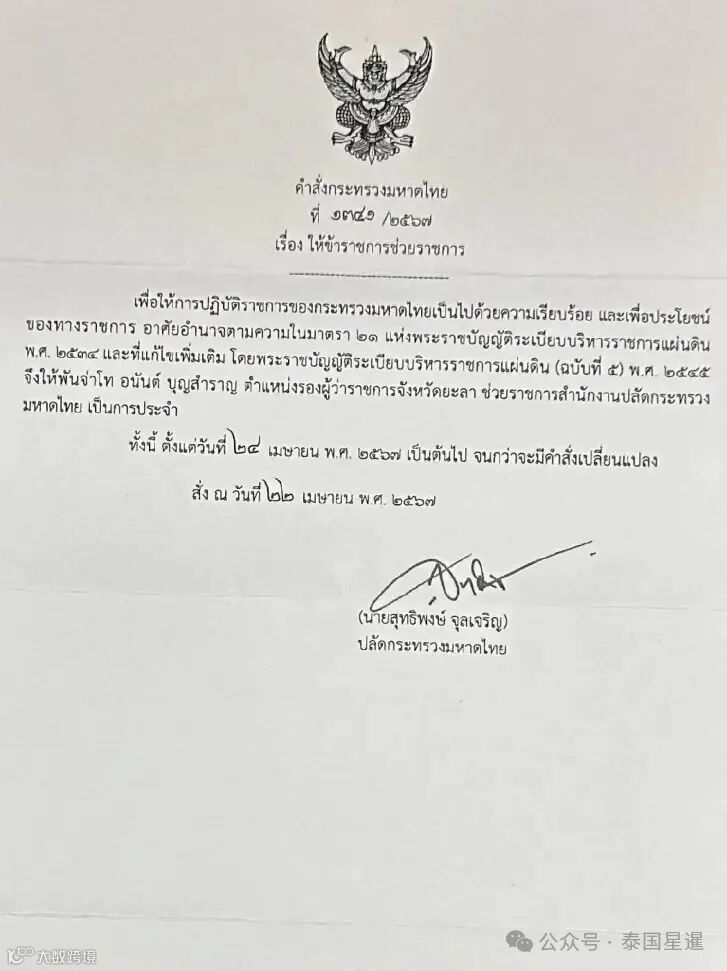 值得一提的是,阿南副府尹在当地口碑甚好,是民众口中的“好官”。他曾在泰国南部也拉府、那拉提瓦府等担任数个县的县长,自2023年起担任也拉府副府尹。