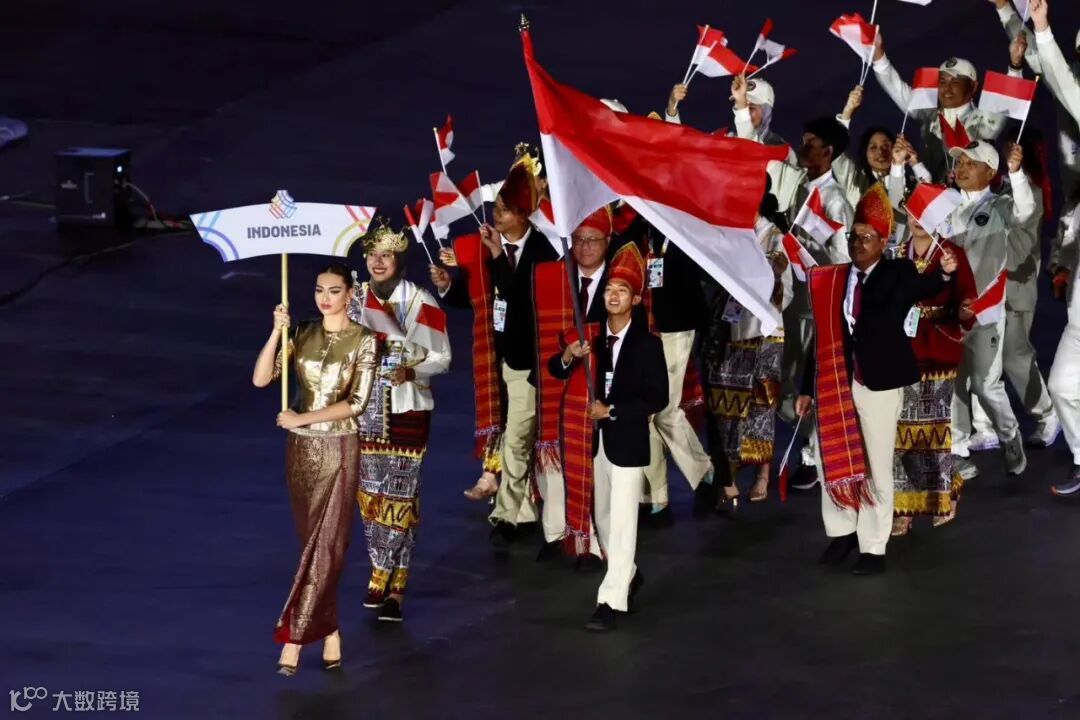 此后,旗帜仪仗队依次入场:东南亚体育联合会会旗、泰国国旗、本届赛事会旗以及6个吉祥物进入体育场。紧接着是来自11个国家的运动员代表团入场式,按照传统顺序依次入场:文莱、柬埔寨、印度尼西亚、老挝、马来西亚、缅甸、菲律宾、新加坡、东帝汶、越南,最后是"东道主"泰国代表团压轴入场。