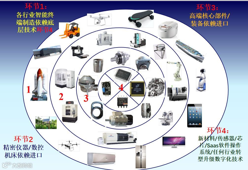 云研技术董事长,中关村股权投资协会副会长李利凯就“科技投资与创业创新”的主题进行了分享, 他指出“新经济价值链模式=传统行业+新技术+互联网/移动互联网+软件+硬件+传感器+芯片+云计算+大数据+人工智能+区块链+服务+证券化”。他强调制约行业发展的底层技术是重点投资领域,如图所示: