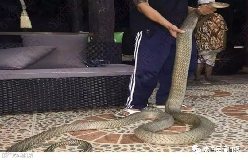 近日,泰国甲米府直辖县一酒店人员向动物站人员求助称,酒店大堂发现一条眼镜王蛇,并已疏散人群。