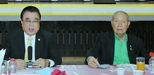 图:泰国潮州会馆主席黄迨光博士主持会议时致开会词。