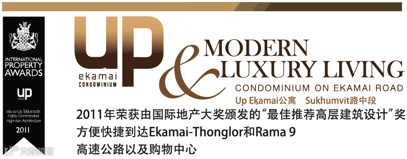 星暹国际房产咨询公司看房团募集:最佳推荐高层建筑设计奖Up Ekamai公寓,399万铢起,30多种户型可选,今年底竣工,精装带豪华家具,拎包入住,位于Sukhumvit路中段近轻轨、高速及购物中心。