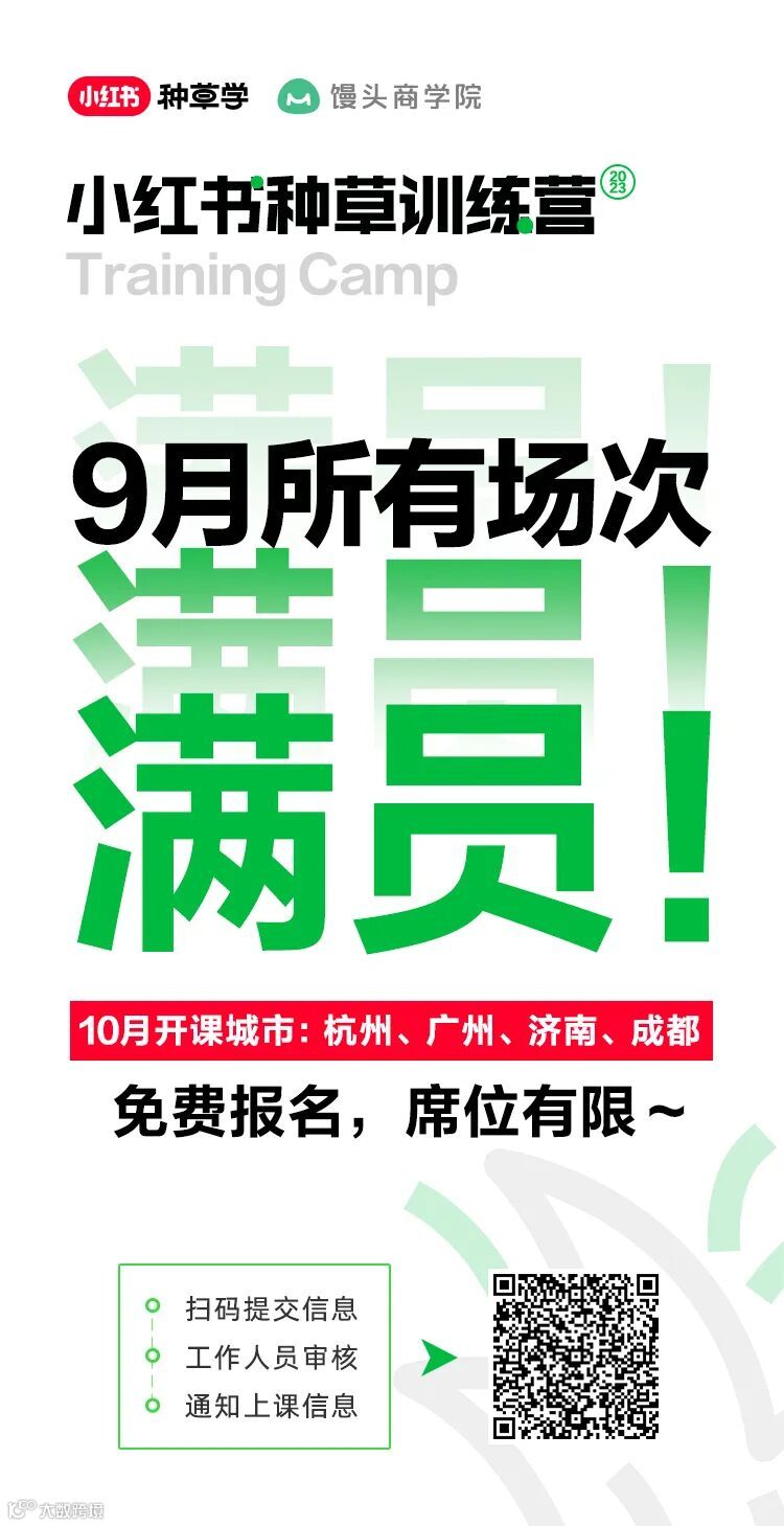 小红书联合馒头商学院共同推出线下学习课程《小红书种草训练营》,带你快速通关种草营销,找到生意新增量。面向全国招生,扫码报名,审核通过后即可免费参与学习👇