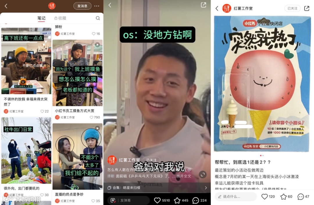 主打一个小红书内部工作揭秘,内容分有三个专栏:我的社恐老板、明星来扫楼、周四盒饭真好吃(据说是个访谈节目)。
