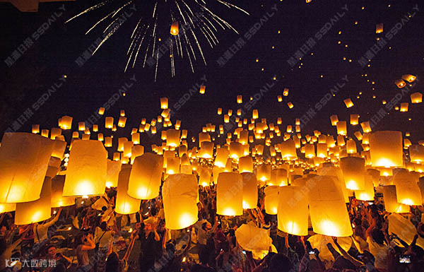 清迈天灯仪式前,人们已陆续放飞孔明灯。(星暹记者 万家 摄)