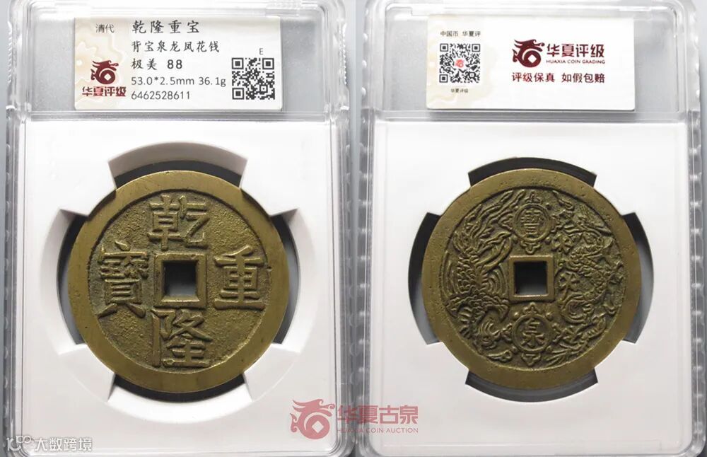 【名称】(华夏评级 极美88)乾隆重宝背宝泉龙凤花钱