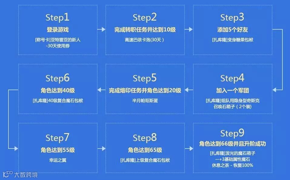 3月30日开服后-5月3日23:59,活动期间,新服玩家完成成长任务,即可领取相应的成长礼包。玩家在游戏内完成成长任务后,需要在页面上领取成长礼包,奖励通过邮件形式发送到对应角色。