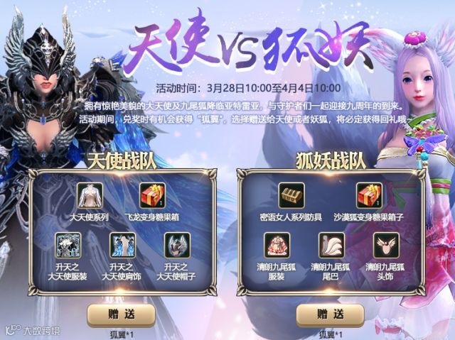 天使VS狐妖,升天大天使系列、清朗九尾狐系列华丽来袭,与守护者们一起迎接九周年的到来,赠送狐翼可100%获得回礼哦~