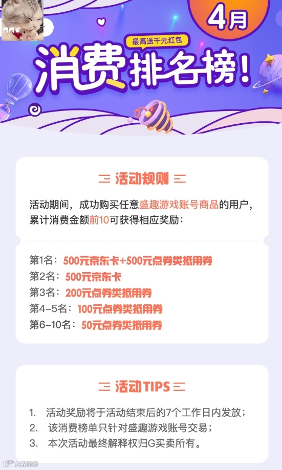 四月消费排行榜活动上线