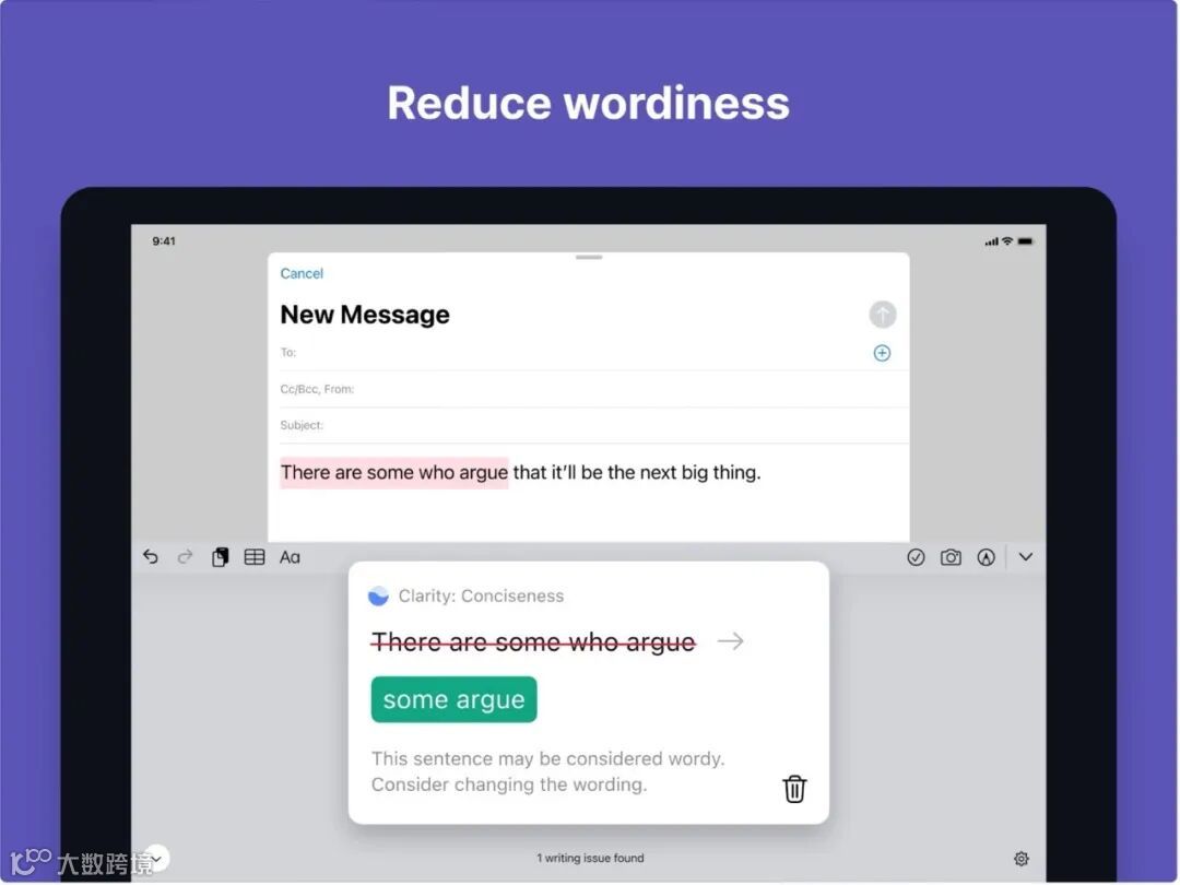 除了语法纠错之外,Grammarly还提供更加深入的文章修改建议,比如词汇、修辞、结构整合等等,是论文高分的法宝。