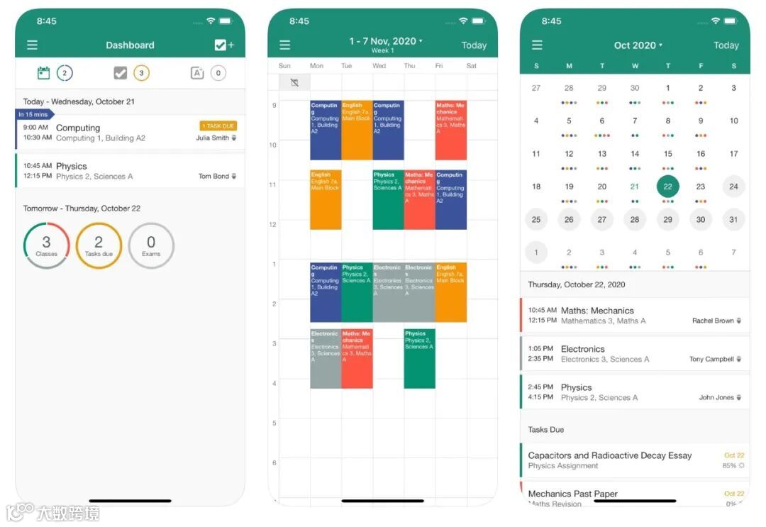 My Study Life和Canvas Student都是任务集成类学习app,能够随时随地在任何设备上跟进课程(导入你的课表)、任务、作业和考试,通过与学校连接,可以查看成绩、课程内容,提交作业、参加测试等等,帮助安排学习生活,更好地组织日程,提高效率。