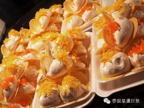 椰奶小脆饼通常有咸甜两种口味,黄色的是甜味,红色的是咸味,烤的酥脆的饼皮与馅内香甜滑口的奶霜形成绝配,讲究些的还可以自行添加内馅喔,比如虾米干或是葡萄干都是很受泰国人欢迎的口味。