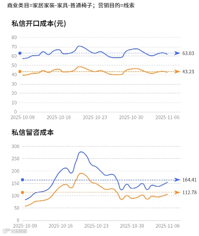 开口成本是43-63元/个,留资成本是112-164元/个。