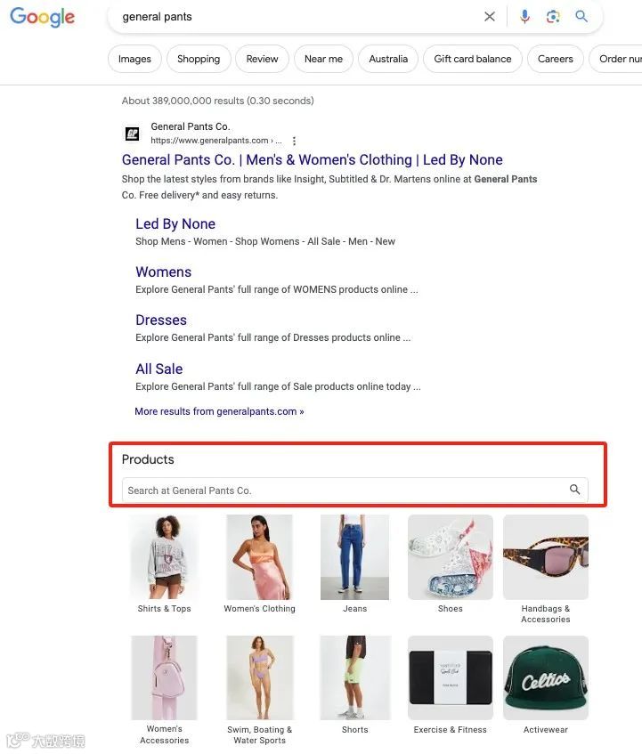 谷歌似乎在搜索结果页测试品牌的产品搜索功能样式,该样式跟九月份发现测试的轮播样式有点类似,都在搜索结果页中提供更多关于目标网站中的内容。