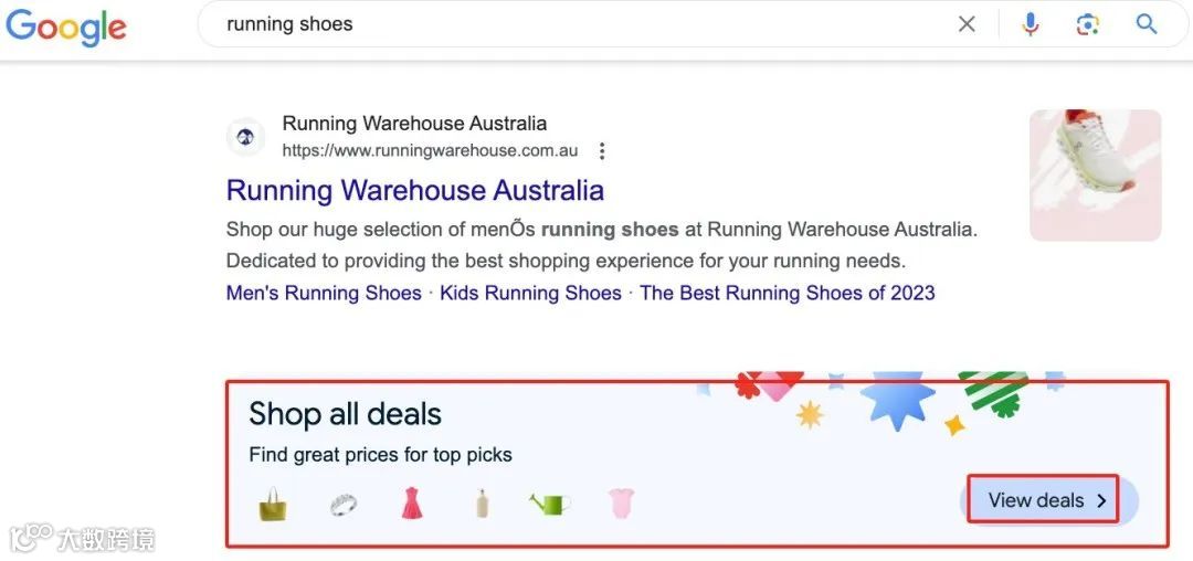 谷歌也在测试新功能来提升用户购买体验,我们发现在搜索结果页中有一个显示优惠信息的横幅样式,用户可以通过点击横幅进入“购物优惠”查询页面。