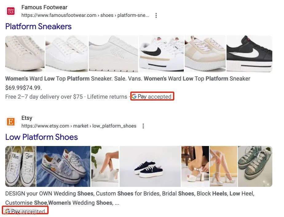 谷歌测试在电子商务站点新增Google Pay accepted样式,这样有助于用户直接判断该商店是否支持Google Pay。
