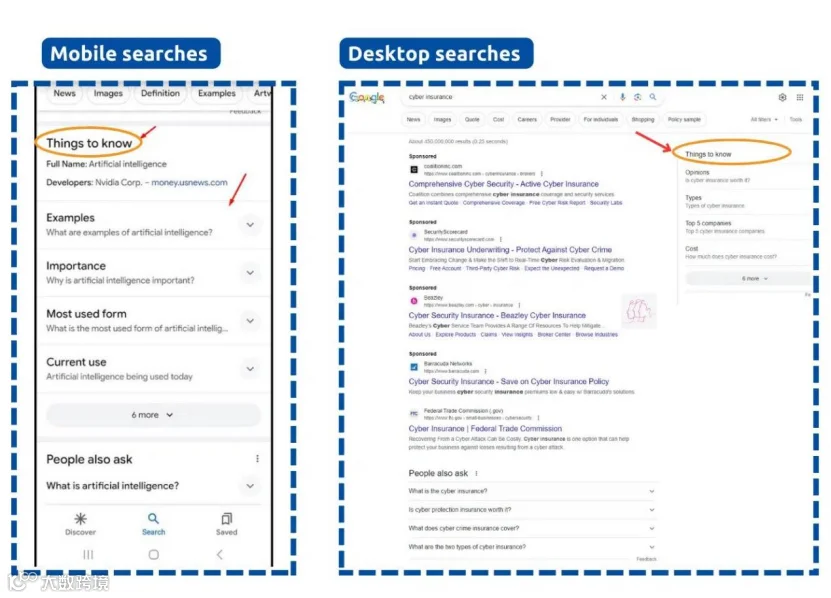 “Things to know”功能最早是在移动端出现,从2022年中开始,谷歌慢慢地过渡到在桌面端搜索结果上。