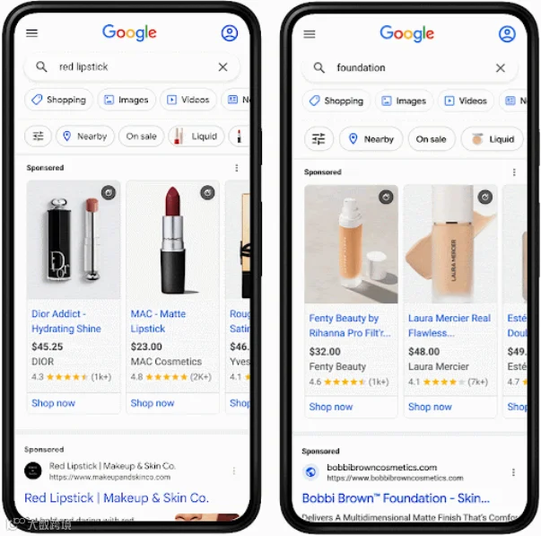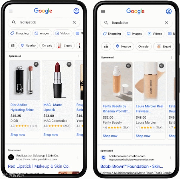 近几年来,谷歌花了大量的功夫在调整和优化SERP(Search Engine Result Page)上,甚至还有分别针对桌面端和移动端的SERP样式,比如有些关键词,例如“red lipstick”,能在移动端触发AR功能,让用户“试用”产品,更好的判断这款产品是否适合自己,从而提升购买转化率。