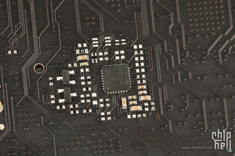 主板背面的NUC121ZC2芯片,提供RGB灯效控制.