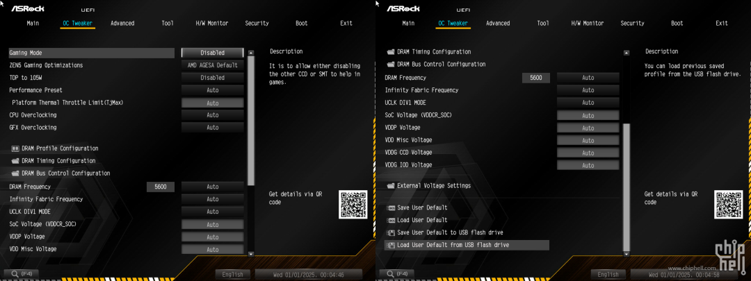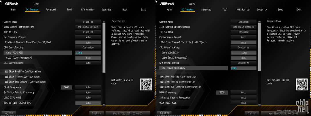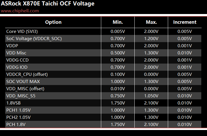 CPU的每个CCD核心以及集显的倍频可供自由调节,并且可覆写Core VID电压.